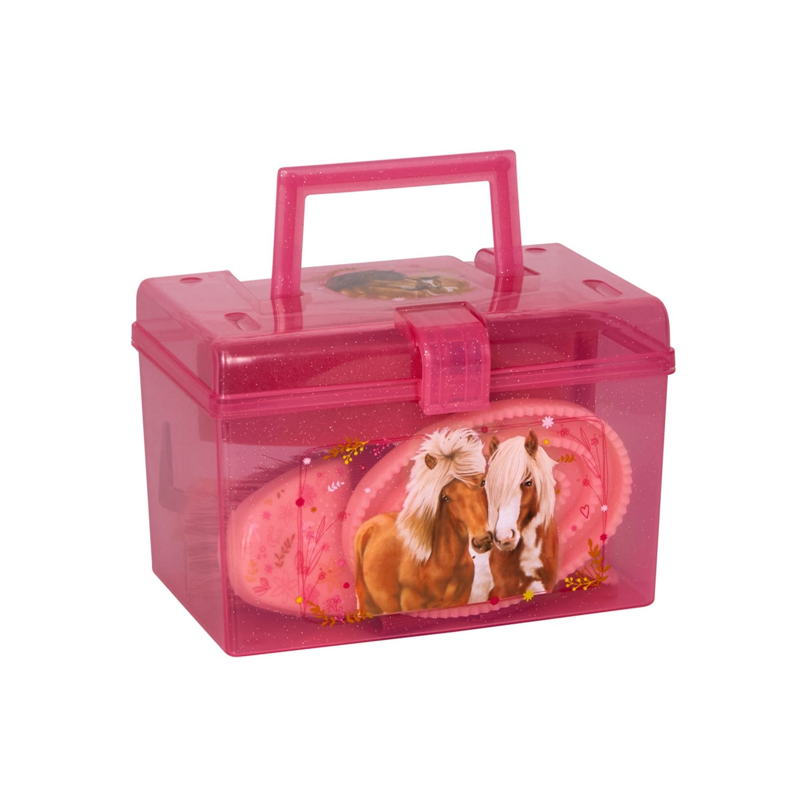 Die Spiegelburg Pferdefreunde Kollektion zeichnet sich durch ihr liebevolles Design und die hohe Qualität aus. Das Putzzeug-Set ist mit niedlichen Pferdemotiven verziert, die die Herzen aller Pferdeliebhaber höherschlagen lassen. Die Farben sind harmonisch aufeinander abgestimmt und verleihen dem Set eine fröhliche und ansprechende Optik. Aber nicht nur das Aussehen überzeugt – auch die Funktionalität und Langlebigkeit des Sets sind herausragend. Du wirst lange Freude daran haben und dein Pferd wird die regelmäßige Pflege genießen.