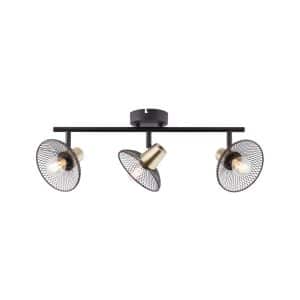 BRILLIANT Lampe Gordon Spotbalken 3flg- schwarz/messing 3x D45, E14, 28W, geeignet für Tropfenlampen nicht enthalten Köpfe schwenkbar Für LED-Leuchtmittel geeignet