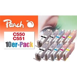 Peach C550XL 10 Druckerpatronen XL (2*bk, bkph, c/m/y) ersetzt Canon PGI-550XL, CLI-551XL für z-B- Canon Pixma IP 7250, Canon Pixma MX 925 (wiederaufbereitet)