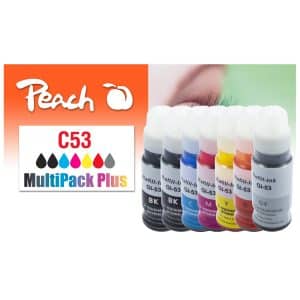 Peach C53 Spar Pack Plus Druckerpatronen (2*bk, c/m/y/gy/re) ersetzt Canon GI-53 für z-B- Canon Pixma G 550, Canon Pixma G 650