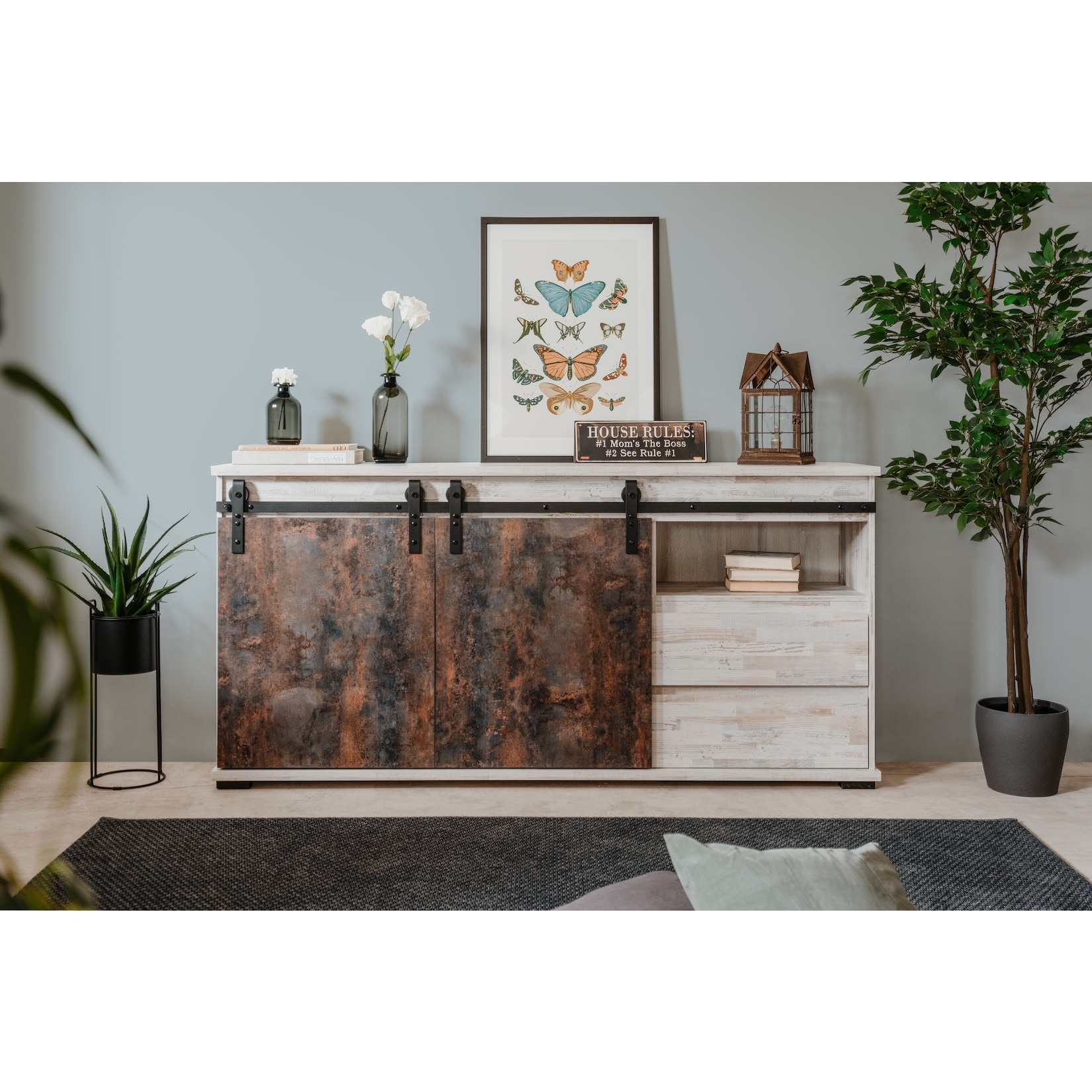 Das Sideboard „Hannah“ ist ein wahres Multitalent und lässt sich vielseitig in Ihren Wohnräumen einsetzen. Im Wohnzimmer dient es als stilvolle Ergänzung zur Sofalandschaft und bietet Platz für Bücher, DVDs oder Ihre Lieblingsdekoration. Im Esszimmer können Sie Geschirr, Besteck und Tischwäsche ordentlich verstauen. Im Flur sorgt das Sideboard für einen aufgeräumten Eindruck und bietet Platz für Schlüssel, Schals und Mützen.