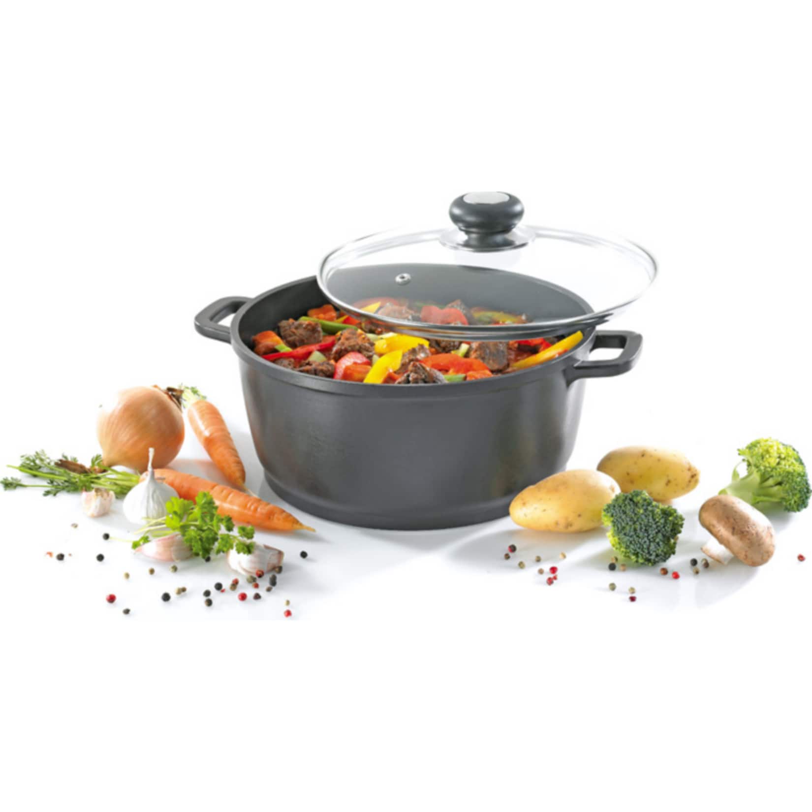 - Praktischer Glasdeckel: Der hitzebeständige Glasdeckel ermöglicht es dir, den Garprozess jederzeit im Auge zu behalten, ohne den Deckel abnehmen zu müssen. So sparst du Energie und verhinderst, dass wertvolle Aromen entweichen.