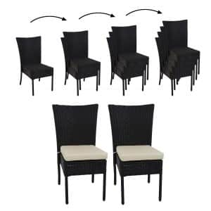 2x Poly-Rattan Stuhl MCW-G19, Balkonstuhl Gartenstuhl, stapelbar ~ schwarz, Kissen creme