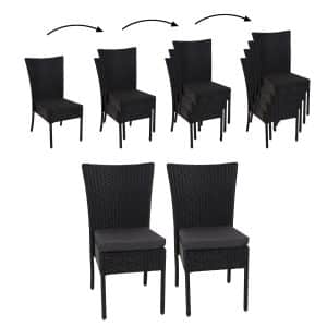 2x Poly-Rattan Stuhl MCW-G19, Balkonstuhl Gartenstuhl, stapelbar ~ schwarz, Kissen dunkelgrau