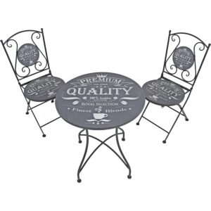 3tlg. Landhaus Bistro Set Balkon Terrasse Metall antik Shabby grau Sitzgruppe