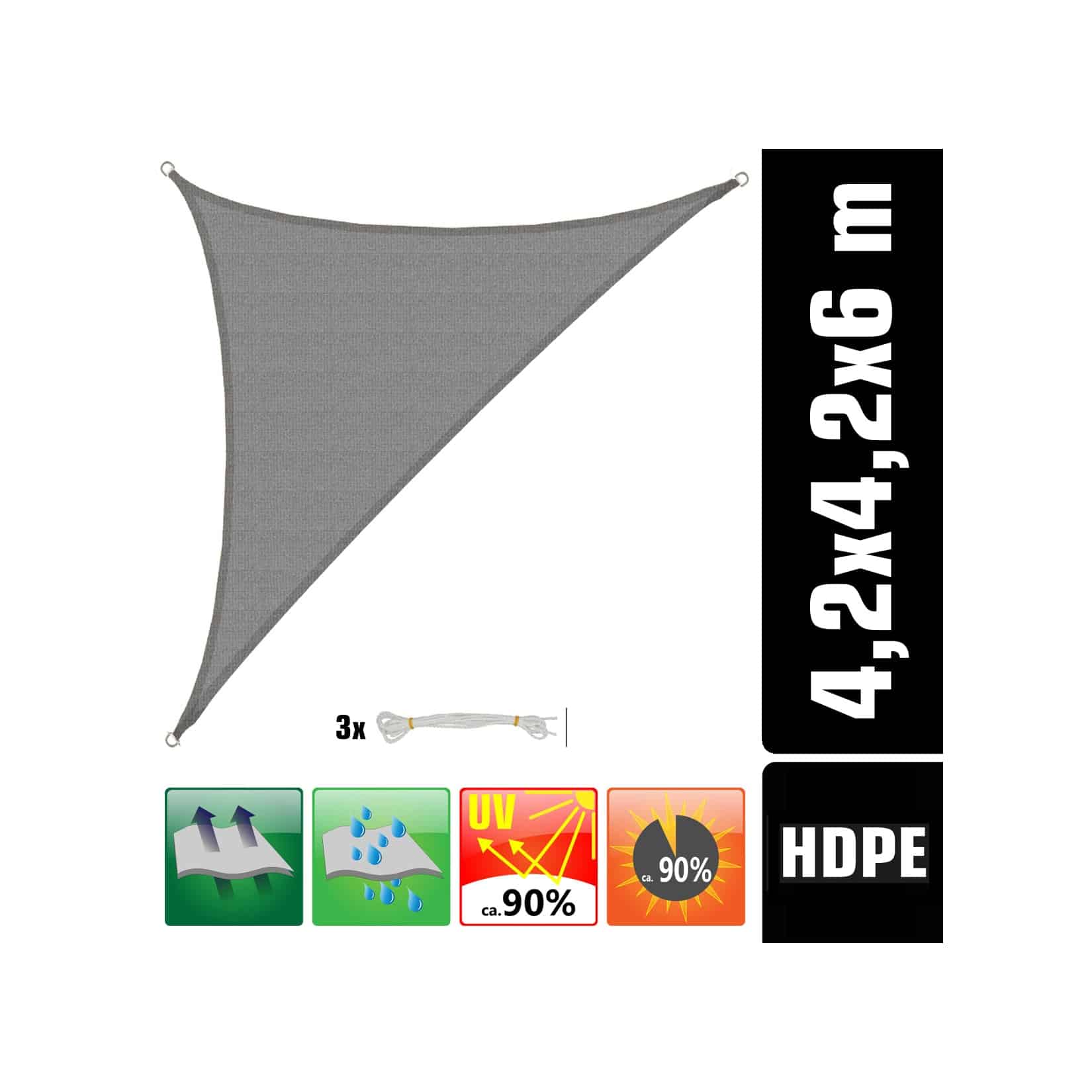 Unser UV Sonnensegel in elegantem Grau ist nicht nur ein praktischer Schattenspender, sondern auch ein optisches Highlight für Ihren Garten, Ihre Terrasse oder Ihren Balkon. Die dreieckige, rechtwinklige Form mit den Maßen 4,2×4,2×6 Metern ermöglicht eine flexible Anbringung und passt sich ideal an verschiedene Umgebungen an. Verwandeln Sie Ihren Außenbereich in einen Ort der Entspannung und Erholung, an dem Sie die warmen Sommertage in vollen Zügen genießen können.