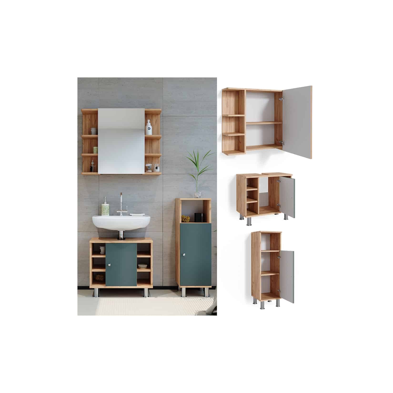 Vicco Badmöbelset Fynn: Dein stilvolles Badezimmer-Upgrade in Eiche Grün