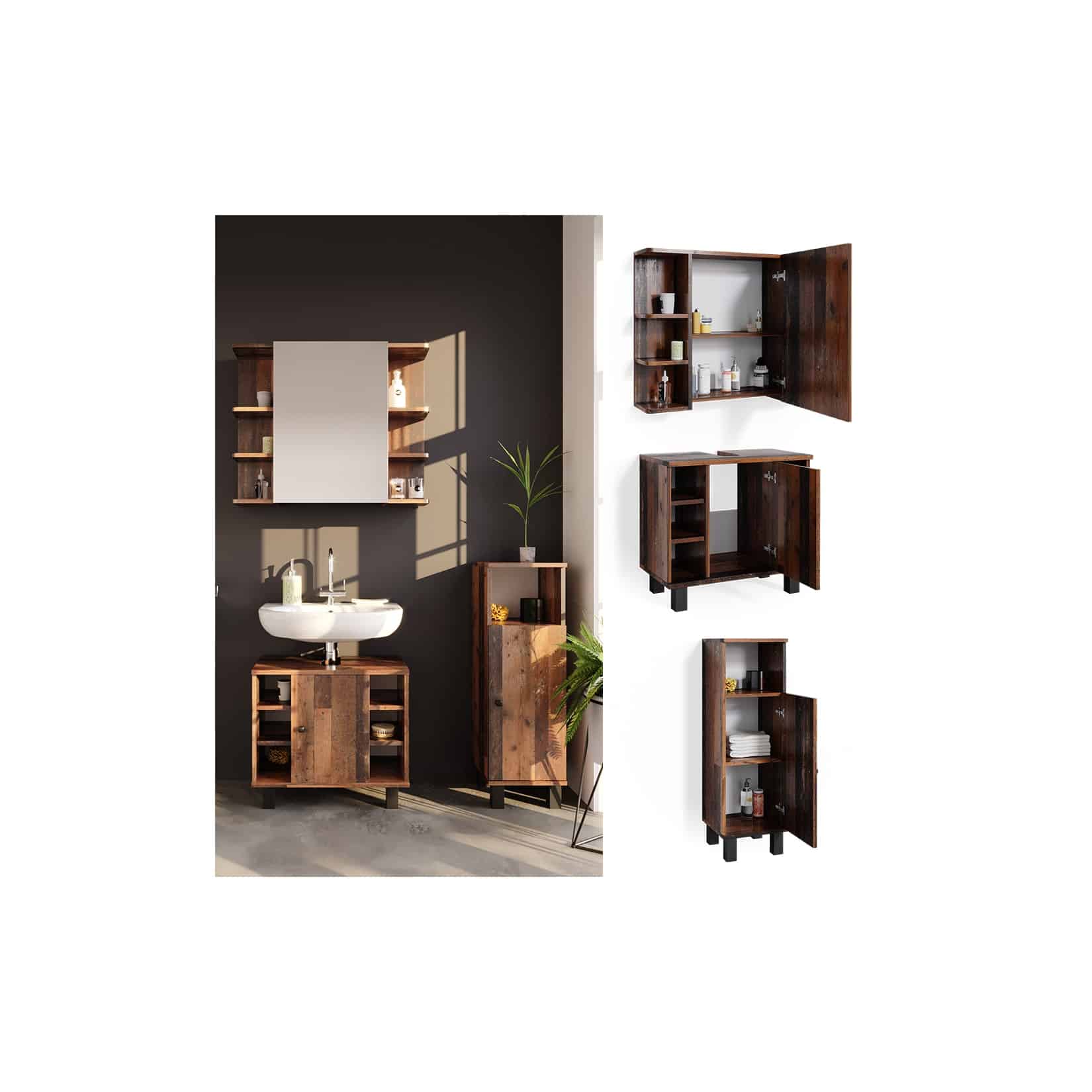 - Umfassendes Set mit Waschtischunterschrank, Spiegelschrank und Midischrank
