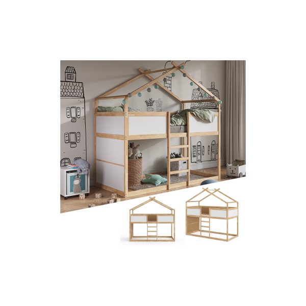 Verwandeln Sie das Kinderzimmer in eine aufregende Abenteuerlandschaft mit dem VitaliSpa Kinderhochbett Merlin! Dieses moderne Doppelstockbett aus massivem Holz in Natur und Weiß bietet nicht nur einen sicheren und komfortablen Schlafplatz für Ihre Kleinen, sondern auch unzählige Möglichkeiten zum Spielen, Träumen und Entdecken. Mit seinen Maßen von 208×203 cm passt es ideal in jedes Kinderzimmer und wird schnell zum Mittelpunkt des Geschehens.
